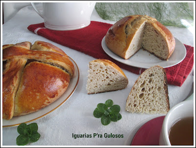 5) Deixar fermentar cerca de 1h no copo á temperatura ambiente (vantagem de ter 2 copos), ou retirar para uma taça e tapar com folha de celofane. É necessário este passo porque estamos a usar fermento padeiro em vez de fermento químico instantâneo, e porque também melhora o sabor do folar.